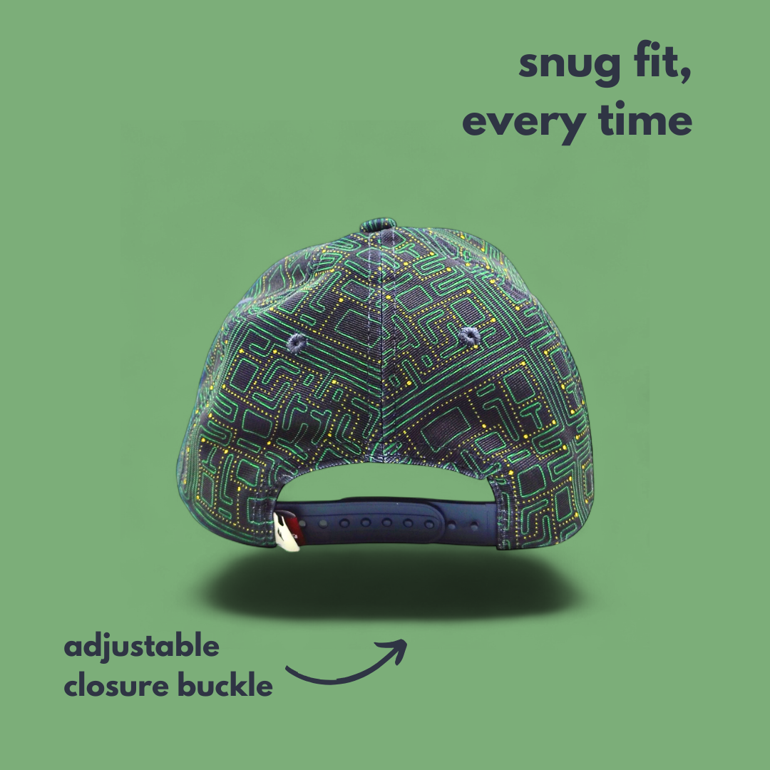 Neon lights flicker, the joystick clicks, the chase begins. Grid is a portal to the golden era of arcade battles—where reflexes ruled and high scores were everything. The dark green and black base sets the stage, while gold and grey accents echo the pixelated legends of the past. It’s more than a cap—it’s a tribute to the thrill of the game, the rush of the chase, and the timeless spirit of play. Whether you're racking up wins or just reliving the classics, this one’s for the player in you.